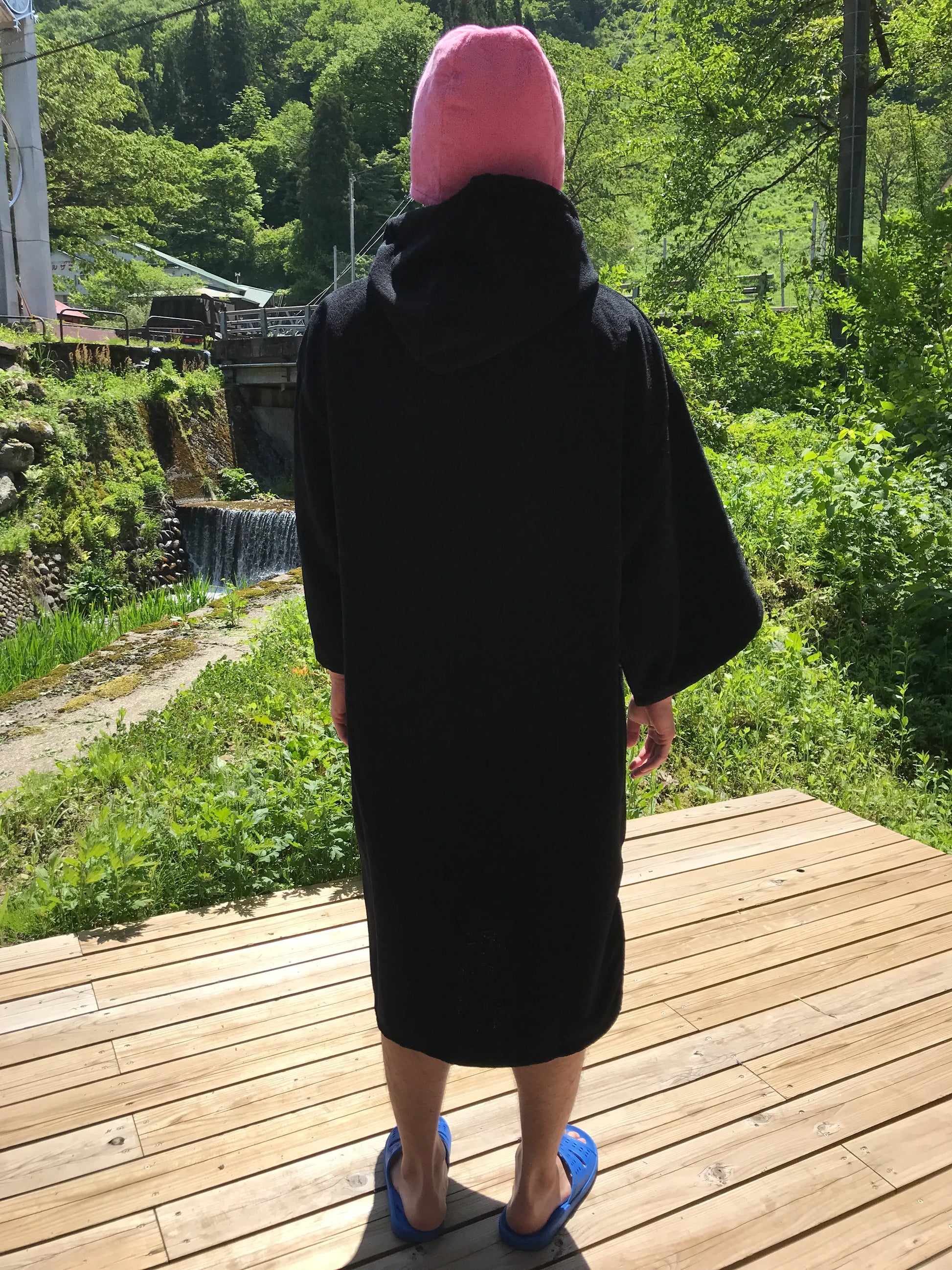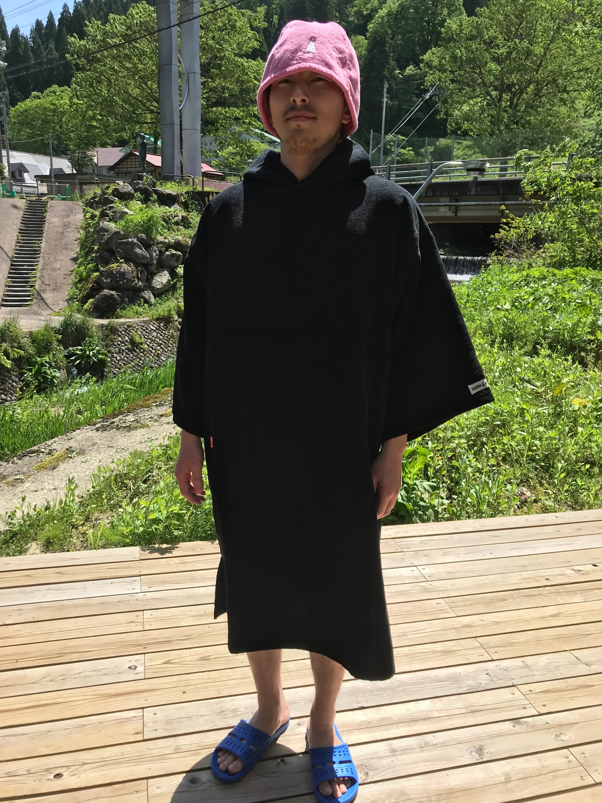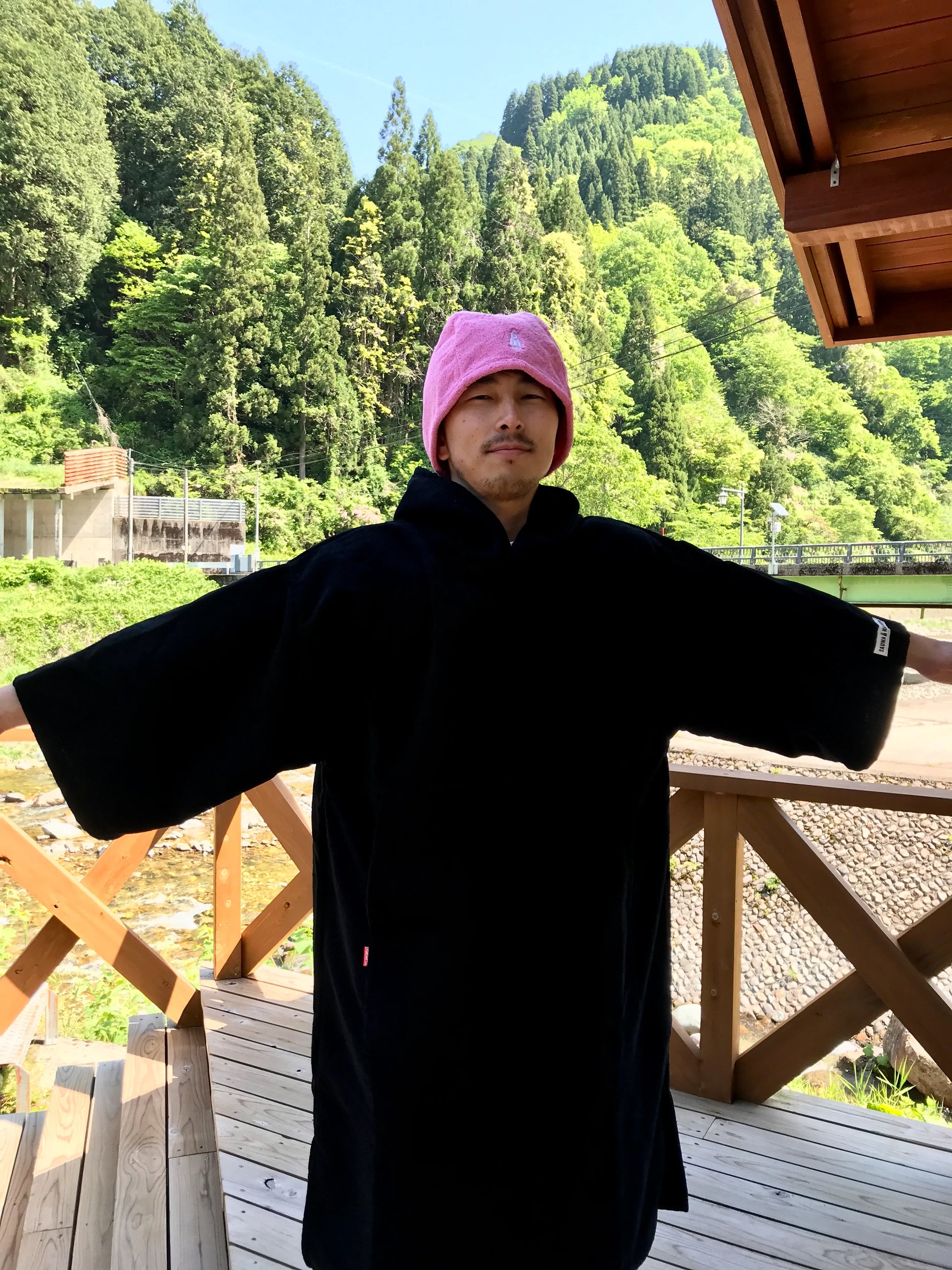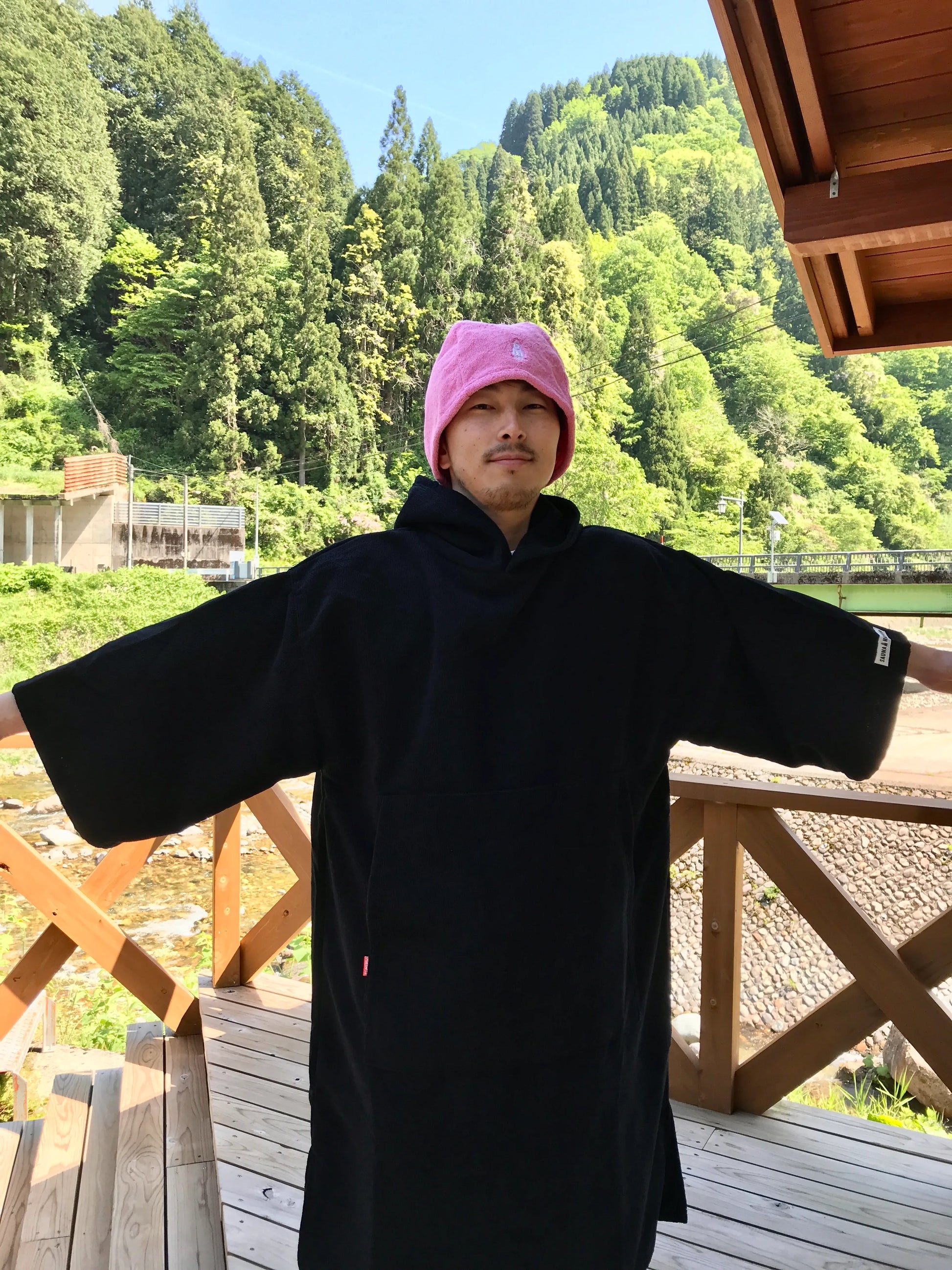 吸水速乾性に優れたドライ素材を使用した、柔らかく肌触りの良いサウナポンチョです。カラーはブラックとピスタチオグリーンの2色です。
